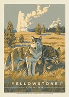 A wolf pack wanders through the tall, grassy regions of Yellowstone National Park.